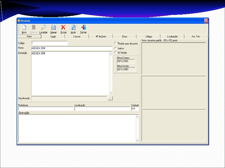Codificação e cadastramento 2 Informações de cadastramento: Código Descrição Unidade de medida Classificação fiscal EAN/ Cód. Fornecedor Pesos Referências Famílias, grupos Etc.