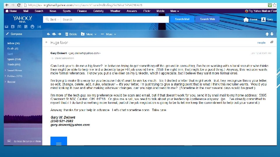 Email headline: Huge favor My recruiter or prospective employer is requesting them and I’d really like to ask for your help I want to make it easy for you so I’ve drafted a version To be clear, this is your letter so edit, change, delete, add Bigger version next page…. Please return by scan-and-send email or home address, add timing Attach Big your draft thank you!! MY REQUEST People love to help! Especially if you make it easy for them