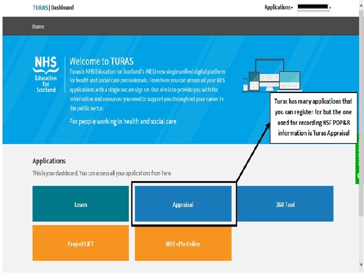 Turas Appraisal • Developed: – As a result of e-KSF contract 31/03/2018 – To include feedback from focus groups 2014 – By NHS Education for Scotland Digital Team – Using Agile Methodology in 2 week “sprints” – Continuously and new features will be added from planned developments and user experience feedback.