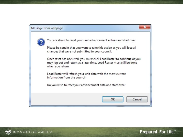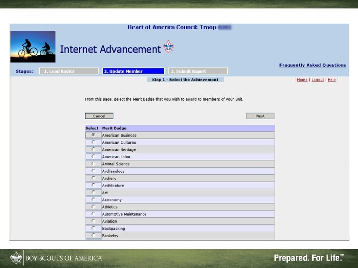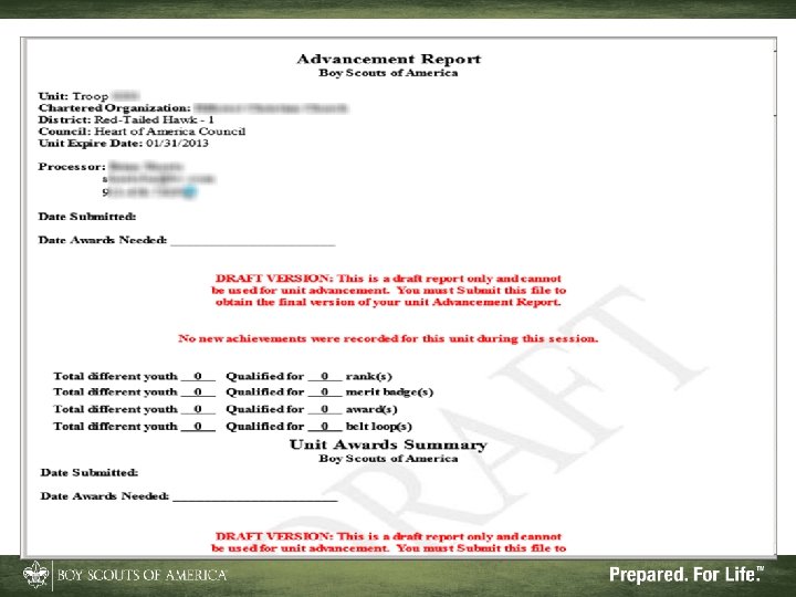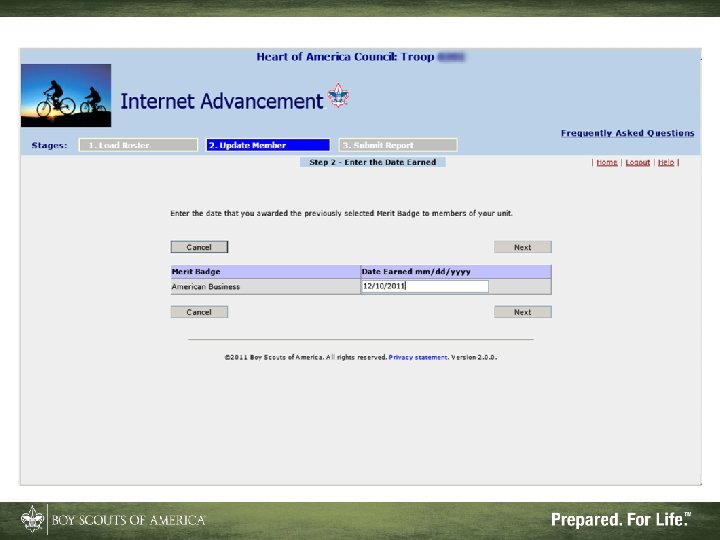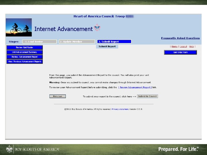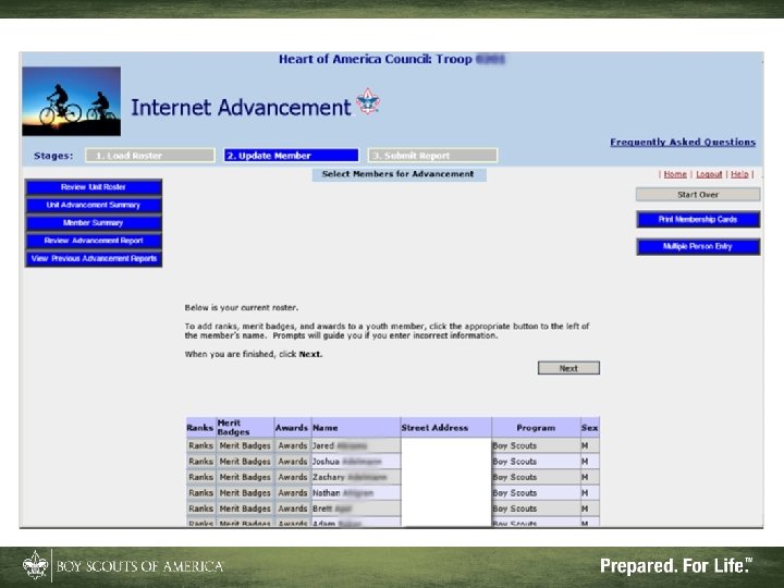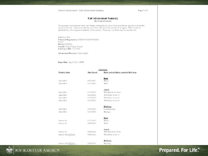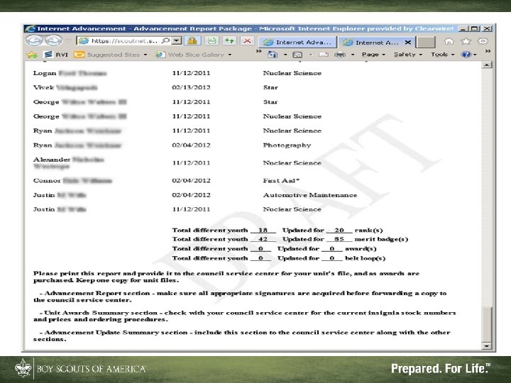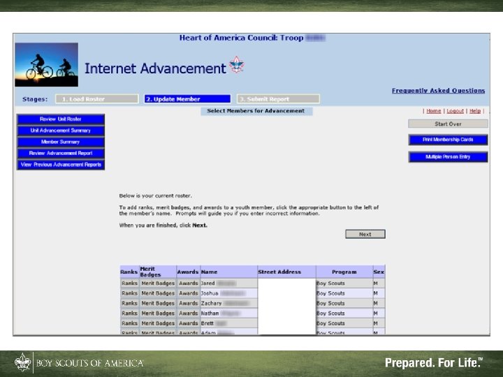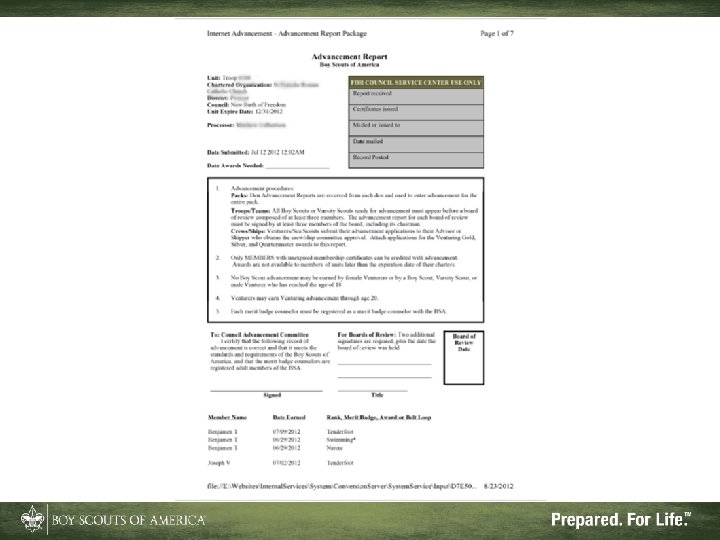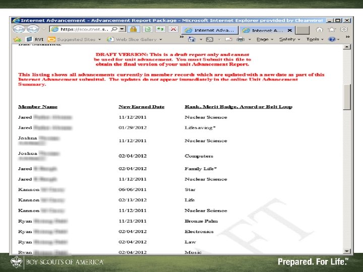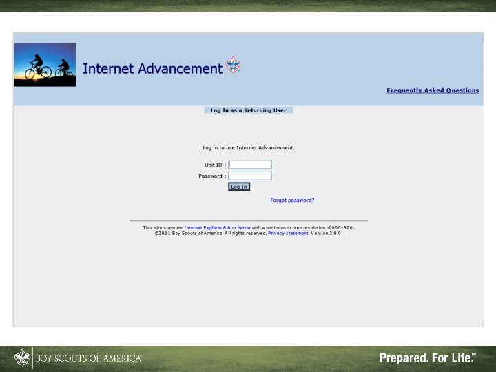 What Internet Advancement Won't Do • Ensure a quality unit advancement program • Record nonadvancement data such as meeting or activity attendance, or positions of responsibility • Record Eagle rank information • Record lifesaving and meritorious awards • Record religious awards or awards from outside organizations