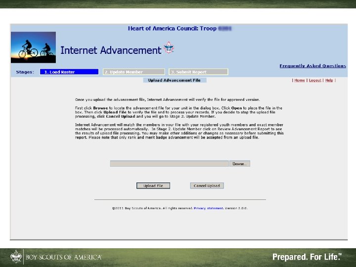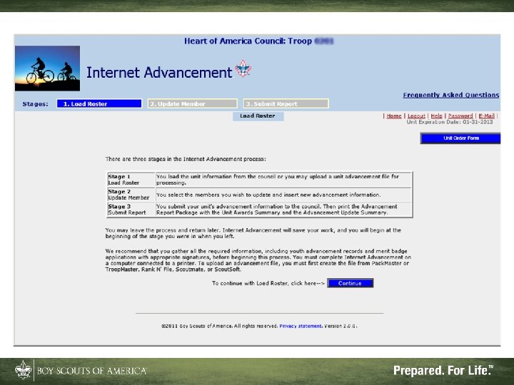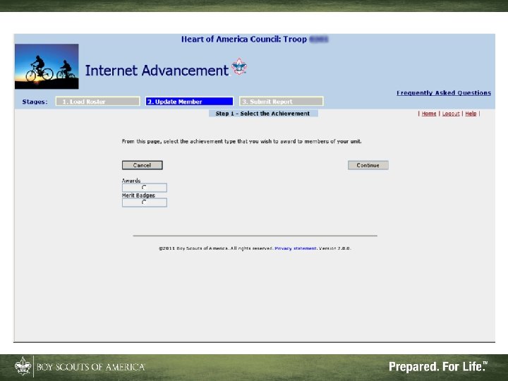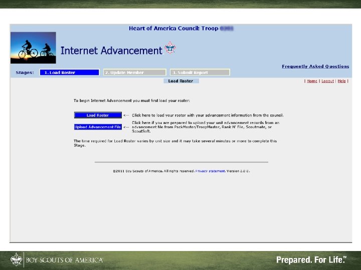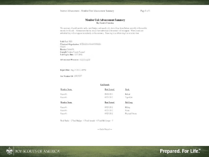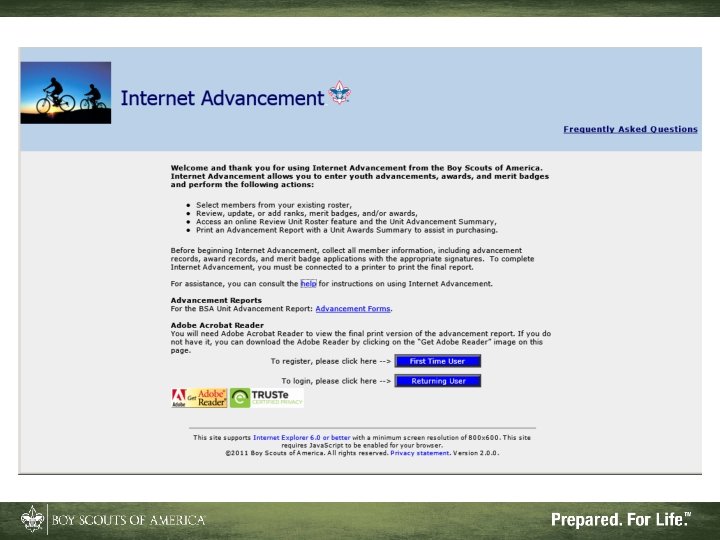 Advantages of Internet Advancement • Reduces or eliminates Scouts’ record gaps • Records ranks, badges, and awards • Can be done at your convenience • Will accept records from Pack. Master™, Troop. Master™, and Scout. Soft™ for ranks and some badges and awards