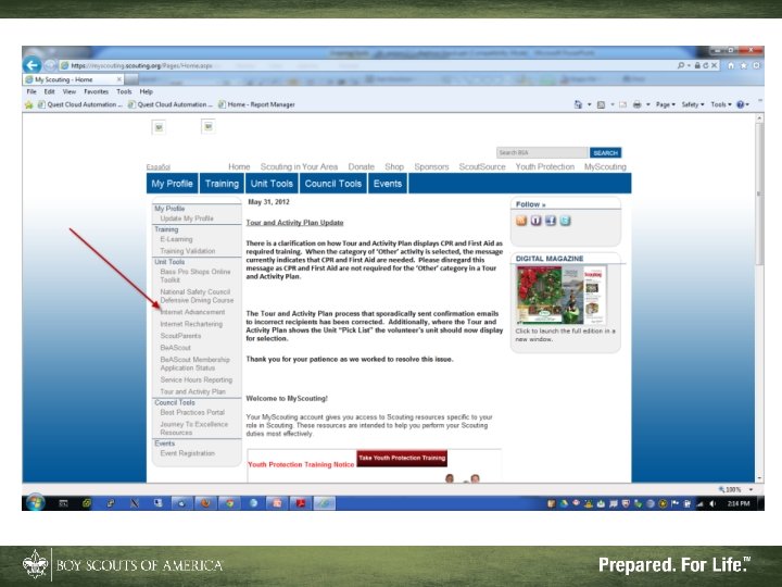 Browser Requirements • Internet Explorer 6, 7, and 8 are OK “as is” • Internet Explorer 9 and 10 work using “compatibility mode” and setting “*. scouting. org” as a trusted site • Google Chrome, Mozilla Firefox, and Safari are not supported • For all browsers, Java scripting must be enabled • For all browsers, pop-up blockers must be disabled