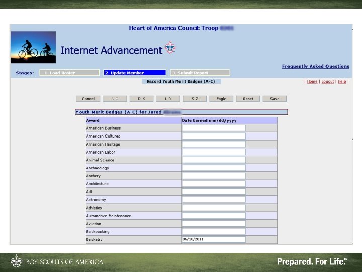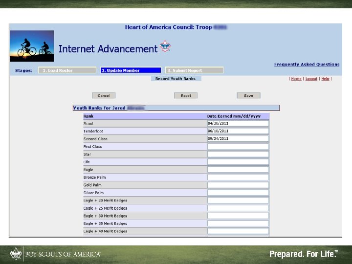 Additional Advantages • Enforces most BSA advancement rules • Eliminates illegible handwriting • Allows advancement date corrections • Provides simple and intuitive interface • Offers useful reports