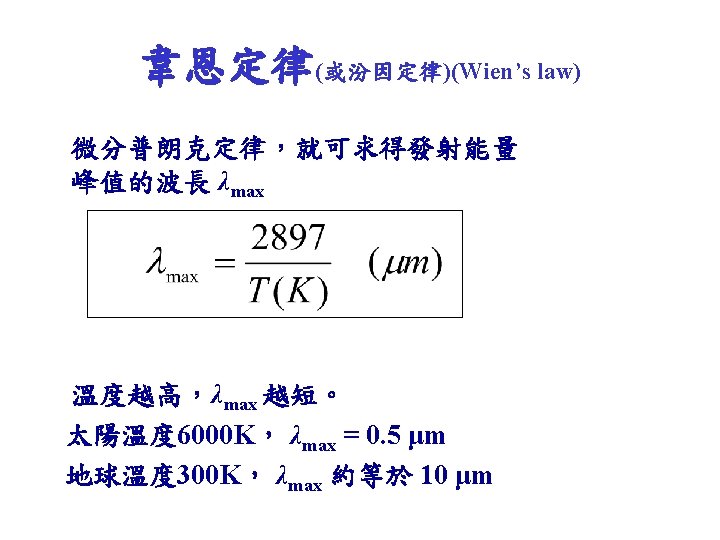 Wind Chill (apparent temp. due to wind) • Wind Chill Equivalent Temperature – If the air temperature is 10。F and the wind is 25 mph, the wind chill equivalent temperature is -29 。F. Wind chill = 35. 74 + 0. 6215 T - 35. 75 V 0. 16 + 0. 4275 T V 0. 16 T: air temp. (F) V: wind speed (mph)