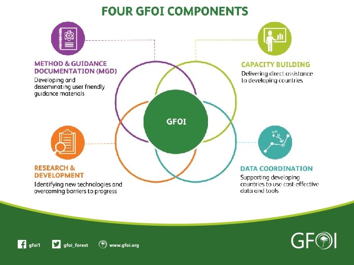 GFOI Stakeholders Developing countries improving their forest monitoring systems and associated emissions Measurement, Reporting and Verification (MRV) practices for REDD+ and other reporting needs Map inventory of activities conducted by GFOI partners by country *Based on voluntary submissions - March 2019 Soon on: www. gfoi. org