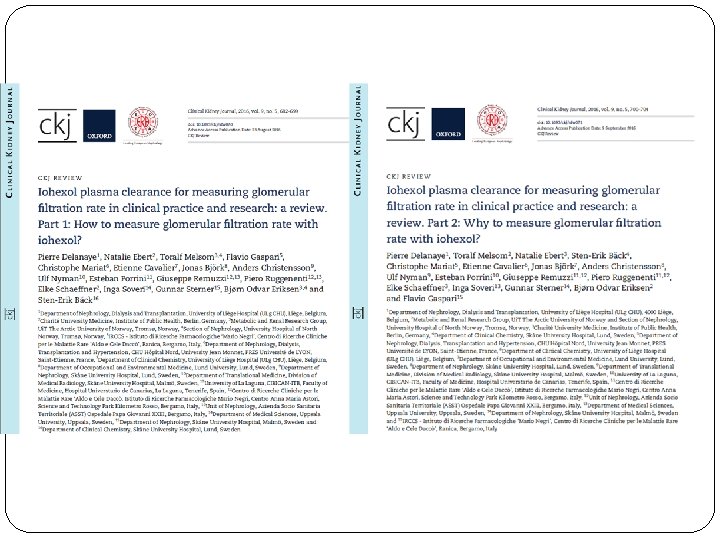 Conclusions �Measuring GFR is useful in clinical practice �Measuring GFR is useful in clinical research �Measuring GFR is useful in epidemiology �Measuring GFR is not so costly (for a reference method) �Measuring GFR is not so cumbersome �Standardization (marker, procedure and measurement) might still be improved �Iohexol is the best balance between physiology and feasibility �Iohexol is safe �Iohexol is the only chance for a worldwide standardized m. GFR