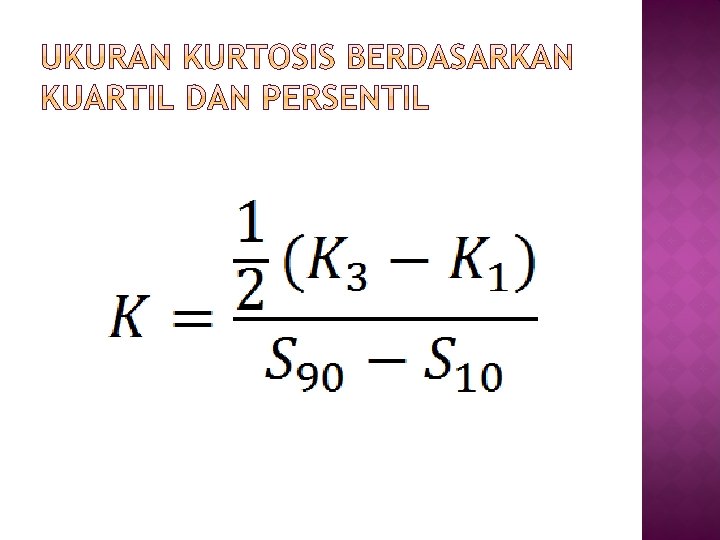 �K = 0, 263 maka distribusi itu normal atau mesokurtis �K > 0, 263 maka distribusi itu platikurtis �K < 0, 263 maka distribusi itu leptokursis