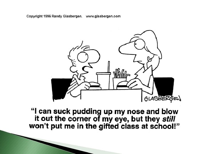 Dueling definitions There are many GT definitions… q q q q Government definitions School definitions Teacher definitions Administrative definitions Researchers’ definitions Author’s definitions Dictionary definitions Student and Parent definitions And they all differ in some way.