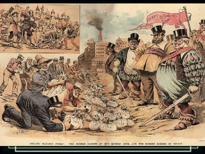 Gilded Age • 1877 -1900, Compromise 1877 to Turn of century, Teddy Roosevelt becomes President • Time of tremendous business growth and labor conflict • Mark Twain coined the term • Gilded= gold plated • Age glittered with new technology, but at its core was corruption and human suffering • Growth of monopolies and trusts • Labor strikes: Great RR, Haymarket, Pullman, & Homestead • New Stock immigrants from Eastern & Southern Europe • Urbanization • 2 nd Industrial Revolution, (ROSE), Railroads, Oil, Steel, & Electricity