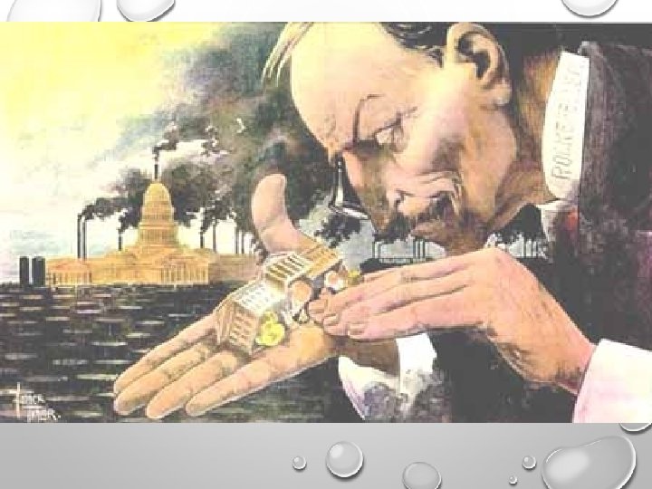 POLITICAL CARTOON #4 • THE LARGE MAN IN ROCKEFELLER • HE IS HOLDING THE WHITE HOUSE IN HIS HAND • THIS SUGGESTS THAT HE HOLDS THE GOVERNMENT IN THE PALM OF HIS HAND. THIS MEANS HE HAS A LOT OF POWER OVER THEM