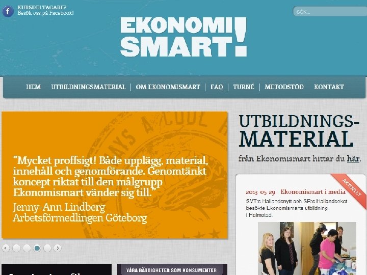 ”Fantastiskt bra kurs, har fått lära mig otroligt mycket som jag inte visste förut. Hoppas att den aldrig tas bort! Nu ser jag allt annorlunda, hur ekonomisk man kan vara. Toppen!” Bra exempel, tempo, igenkännande exempel, gott upplägg. Humor! Inspirerande. Man blir nyfiken och vill lära sig mer. ”