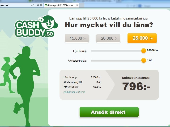 318 kr x 12 mån x 5 år = 19 080 kr Kreditkostnad: 9 080 kr