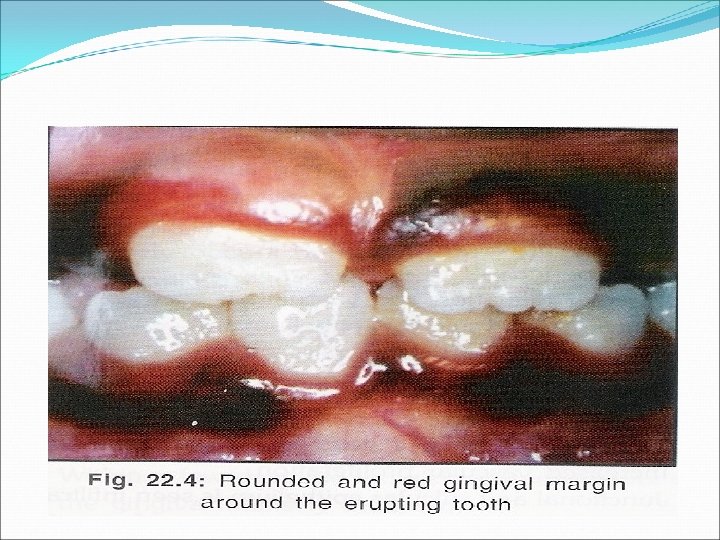 Normal development & eruption of deciduous teeth Swollen gingiva, migration & mobility of teethexfoliation of teeth. 3 -5 yrs all teeth are lost. Regression of inflammation & gingiva becomes normal.