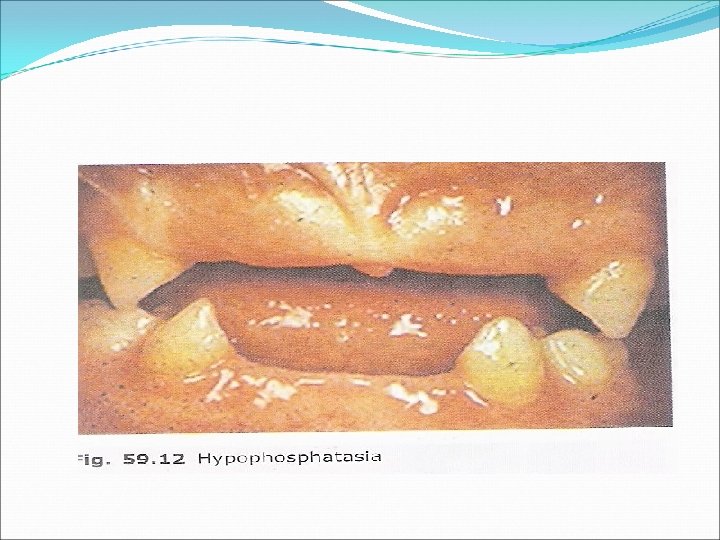 Hypophosphatasia: Genetic disorder. Deficient or defective serum alkaline phosphatase. Premature loss of deciduous teeth to severe bone abnormalities leading to neonatal death. Mild form-early loss of primary teeth-lower incisors.