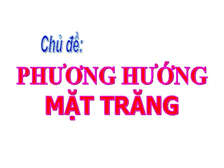• Trăng mọc ở hướng ĐÔNG và lặn ở hướng T Y. • Có 3 loại mặt trăng: –Trăng thượng tuần : Có màu vàng từ 1 – 15 L. Mặt trăng hình lưỡi liềm hai đầu nhọn quay về hướng ĐÔNG, gọi là trăng non. Vào 18 giờ, trăng ở hướng NAM và 24 giờ trăng ở hướng T Y.