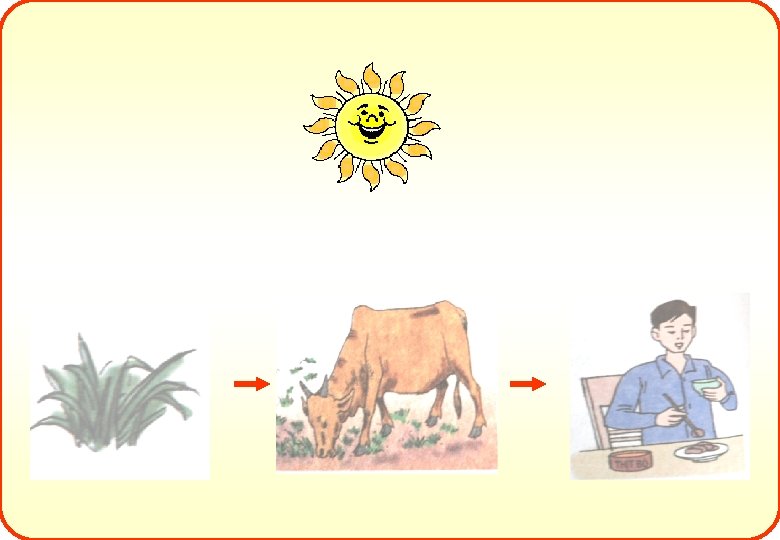 Thứ 4 ngày 15 tháng 2 năm 2012 Khoa học Năng lượng mặt trời Emặth. Trời ãy vẽcólạivai sơtrò đồ chuỗi thức ăn theo hình M gì trong chuỗi thức ăn minh đó ? hoạ ? Cá Bß Ng êi Mặt Trời cung cấp ánh sáng và nguồn nhiệt cho cây cỏ lớn lên, cho bò được sưởi ấm, lấy được thức ăn, cho con người hoạt động, cỏ là thức ăn của bò, thịt bò là thức ăn của người.