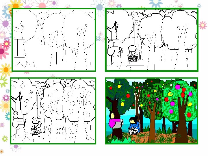 Bài 4: Vẽ tranh Vườn cây * Hoạt động 2: HÖÔÙNG DAÃN CAÙCH VEÕ Choïn caây ñeå veõ Bước 1: Vẽ thân cây với các dáng khác nhau. ( Thân nhỏ, thân to, thân uốn cong. . ). Bước 2: Vẽ tán lá. Có cây tán lá xum xuê có cây lá rất thưa Bước 3: Thêm một vài chi tiết phụ cho bức tranh thêm đẹp. ( quả, hoa, cỏ, người) Bước 4: Vẽ màu có đậm, nhạt. .