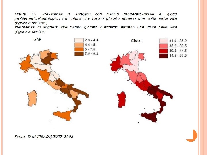 TIPOLOGIA DI DANNON • Giocatore Ossessivo(2) –Preferenza delle donne per giochi non strategici (slot, G&V, lotto), degli uomini per scommesse sportive, poker e altri giochi di carte. –Comorbilità psichiatrica: prevalenza di depressione, ansia e sintomi Ossessivi Compulsivi, “Sindrome del nido vuoto”, scarse risorse nella gestione dello stress – Trattamento farmacologico, più psicoterapia cognitivo-comportamentale la gestione dello stress