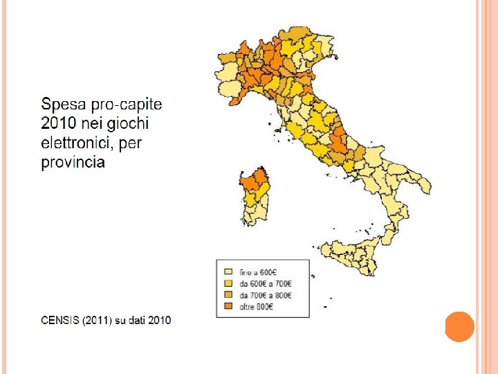 FUNZIONI DEL GIOCO D'AZZARDO Nei periodi di crisi economica, valoriale e di incertezza per il futuro può svolgere una funzione compensatoria nei confronti del malessere della vita, occasione per fantasticare mete di successo che appaiono altrimenti irraggiungibili; incanala frustrazioni e favorisce modalità regressive di funzionamento psichico con il prevalere del pensiero magico. Nei momenti di benessere economico risponde a una funzione di tipo ludico (ci sono i soldi per divertirsi) Imbucci, Il gioco pubblico in Italia (1999)
