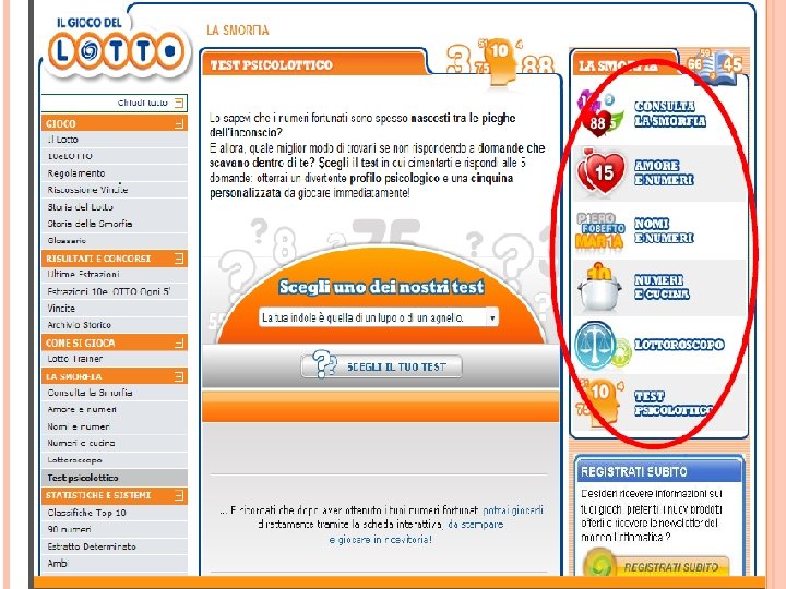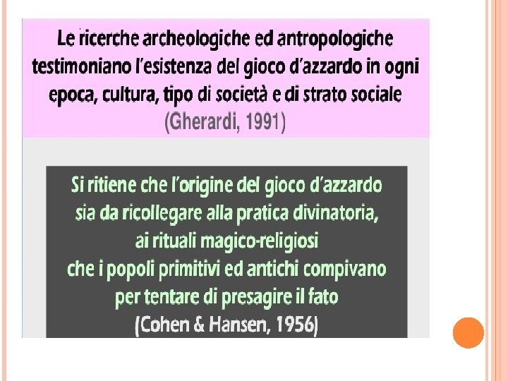 ERRORI COMUNI DI PENSIERO Errori di pensiero Pensiero magico: “padre morto = 3 e 69” Pensiero pseudo statistico: numeri ritardatari Controllo predittivo: “la slot tra poco pagherà” Illusione di controllo • Pensiero superstizioso • Sentirsi in periodo fortunato Distorsioni interpretative: motivazioni pseudorazionali delle perdite che giustificano ad insistere nel gioco