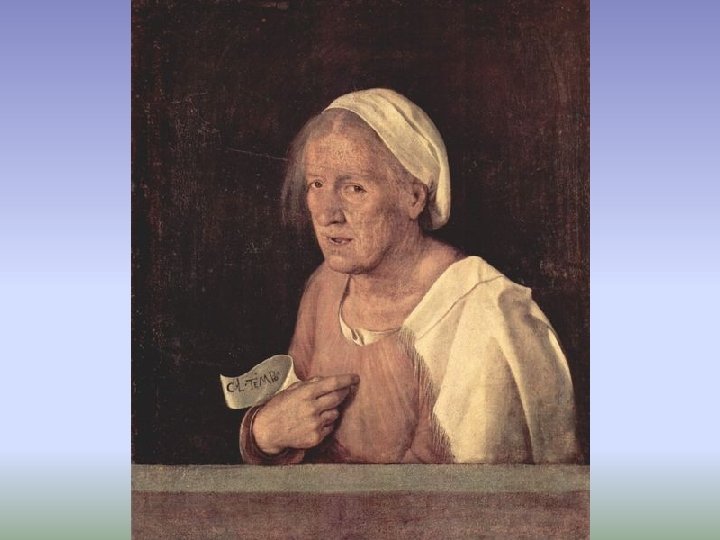 Öregasszony arcképe A portré modelljéről többen úgy tartják, hogy a művész édesanyja, de – természetesen – ugyanennyien tagadják ezt. Alátámasztja a rokoni kapcsolatot a képből sugárzó mély érzelmi töltés, ellene szól viszont a giorgionei szellemtől távoli, túlságosan realisztikus megközelítés. Tény, hogy egy 1569 -es leltárlista tartalmazott egy erre utaló képet „Zorzon anyjának arcképe Zorzon kezétől” megjegyzéssel. Arról tehát, hogy ki a modell, vita folyik, de a szerzőség kérdésében már teljesnek mondható az egyetértés. A vászonra készült festmény 68× 59 cm méretű, és a velencei Gallerie dell' Accademie tulajdona.