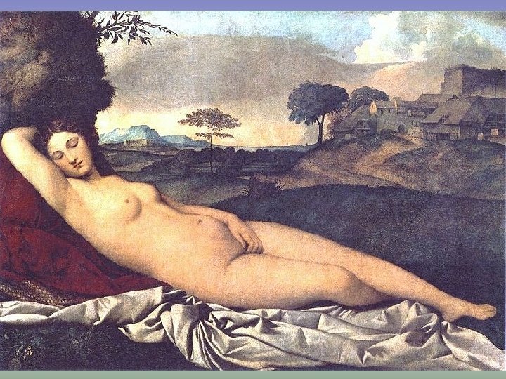 Alvó Vénusz Általános vélemény szerint Giorgione legszebb alkotása az „Alvó Vénusz”, amely egyben utolsó műve volt. Ez az az alkotás, amely példaképe lett a velencei iskola valamennyi fekvő Vénuszának, de sem Tiziano, sem Palma Vecchio, sem mások műve sem vetekedhet Giorgione alkotásával. A képet Marcantonio Michiel, a gyűjtő-író (az ő értékes feljegyzései alapján sikerült azonosítani több Giorgione festményt) megtekintette 1525 -ben akkori tulajdonosánál, és így írta le: „A tájkép az alvó meztelen Vénusszal és kupidóval Z. d. C. (értsd: Zorzi da Castelfranco) keze munkája, de a tájat és a kupidót Tiziano fejezte be. ” A kupidót (Ámor alakot, kezében madárral) később lefestették, sokak szerint a kép csak nyert vele. Gyakori téma az utókor számára Giorgione és Tiziano kapcsolata. Tiziano Giorgione több képén dolgozott, némelyiket – Giorgione halála után – ő fejezte be. Vasari szerint Tiziano Giorgione tanítványa volt, ugyanakkor más források arra utalnak, hogy egy évvel idősebb volt, mint Giorgione, és mindketten Bellini tanítványai voltak. Scharten-Antink több forrás és bizonyíték alapján Tizianót kilenc évvel fiatalabbnak tartja, ami szintén a tanítványi viszonyt támasztja alá. Giorgione fiatalon hunyt el. Halálával kapcsolatban is romantikus mendemondák terjedtek el, de minden forrás szerint az 1510 októberében kitört pestisjárványban vesztette életét.