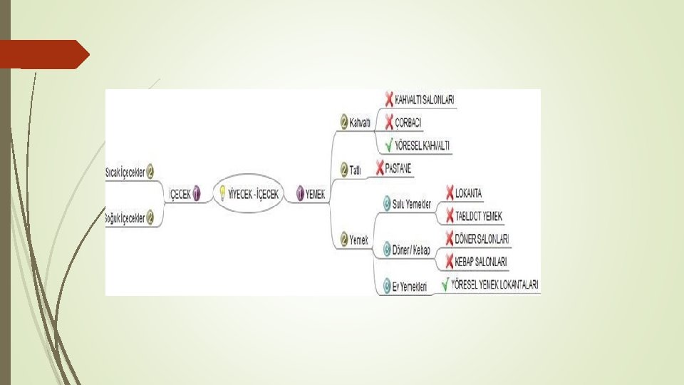 Fikirler Haritası Fikirler haritasında ise öncelikle ilgi duyulan bir alan ve ismi bir kutucuğa yazılır. Sonra konu ile ilgili konu ve ürünler bağlantı kurularak yazılır. Böylece bir ürün hakkında nihai karar verilebilir.
