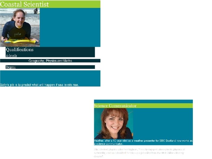 Alternative (if difficult to find live role models): STEM careers video clip http: //www. iop. org/education/higher_education/stem/care ers/page_44405. html Solar Energy l l Case Studies http: //www. physics. org/careers. asp? contentid=381