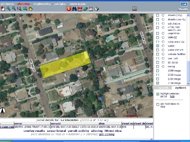 Chula Vista GIS … History n 1994 – GIS started in Engineering Dept. A number of layers (curb, gutter, sidewalk) created from 6” digital orthophoto n 1998 – Desktop application development using Arc. View / Map. Objects n 2002 – Arc. IMS development n 2005 – Begin migration to Enterprise Geodatabase (SQL-Server)