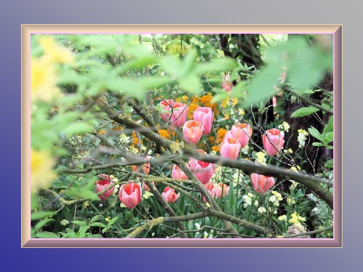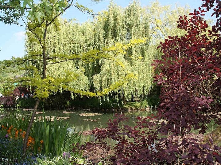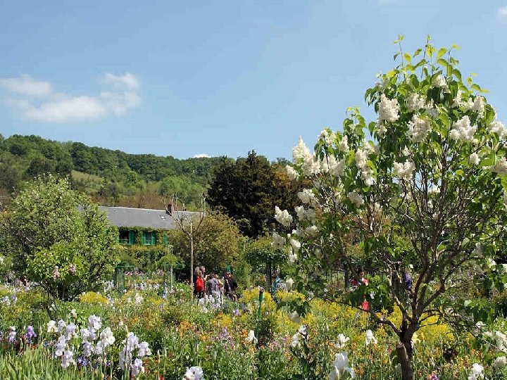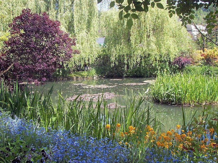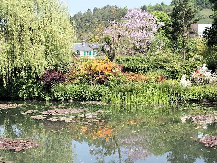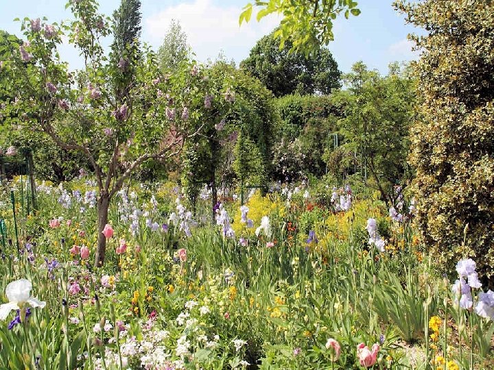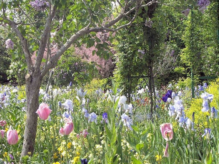 Chaque jour, le jardin est conforme au souhait de Claude Monet qui en avait fait un tableau vivant puisque les tulipes vont évoluer comme les azalées, les rhododendrons et les iris offrant le spectacle inlassable de leur jeu de couleurs. Le tout renforcé par la présence des juliennes, des pivoines, des myosotis et des pavots. Pour terminer ce diaporama, une anecdote survenue juste après le décès de cet artiste : Clémenceau qui avait énormément d’amitié et d’admiration pour le peintre arriva trop tard à son chevet. Il aurait insisté pour qu'on ne recouvre pas le corps d'un linceul noir, en expliquant que cela n'était pas convenable : « Pas de noir pour Monet ! Le noir n'est pas une couleur ! » . Il aurait alors arraché les rideaux motifs colorés de la fenêtre pour en recouvrir la dépouille du peintre.