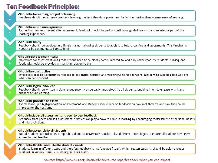 Bad feedback v Saps students’ confidence v Directs students’ activities in inappropriate directions v Fails to articulate with learning outcomes v Fails to relate clearly to evidence of achievement of assessment criteria v Relates only to what is easy to assess rather than what is at the heart of learning v Focuses on failings rather than achievements