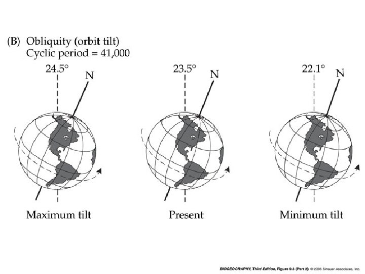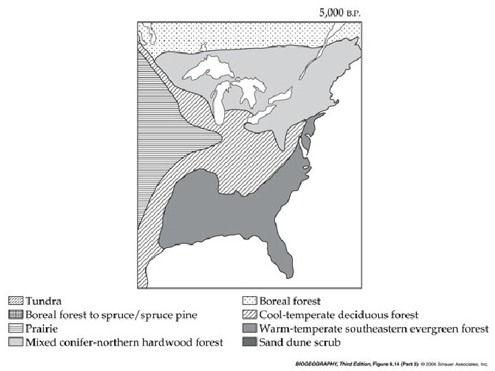 And look at this…. These graphs represent the upper elevational limits of tropical forests (as determined from pollen analysis) in mountains of three different regions (East Africa, New Guinea, and South America) over the last 33, 000 years. Note that in these widely separated regions, the elevation of the tropical forest decreased from about 28, 000 B. P. to around 16, 000 B. P. , then began to increase. This represents the cooler climate of the glacial period (during which the forests shifted to lower elevation), followed by the warming of the interglacial with the concurrent upward shift of the forest.