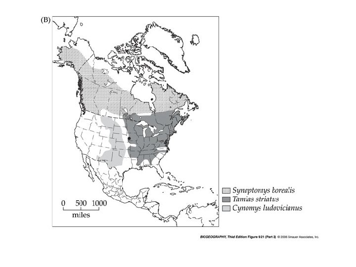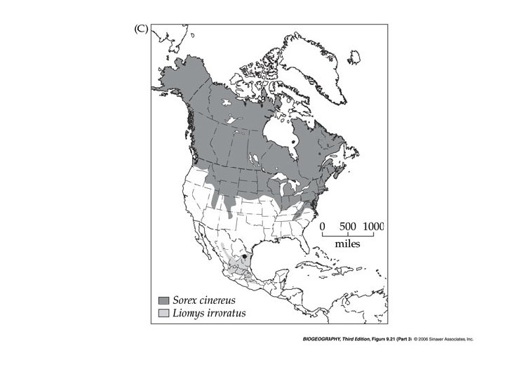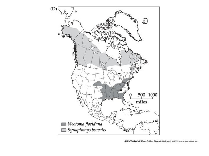 Differences in range shifts may have a number of results. In these cases, species which co-occurred during the most recent glacial maximum have become disjunct today. In these figures, current ranges of species are shown. The dot represents a location where late Pleistocene fossils of all are found together.