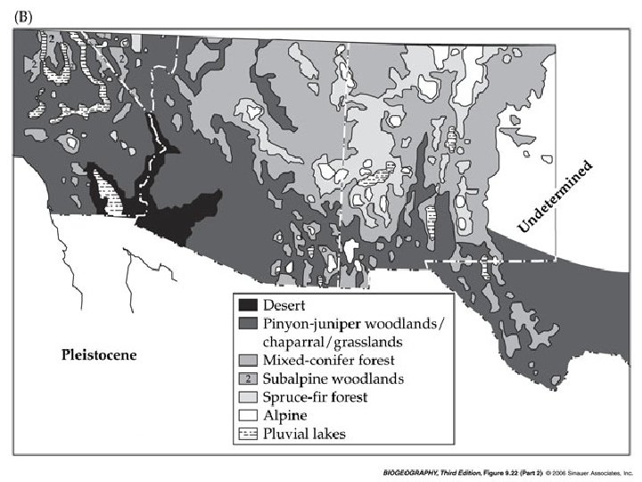 Significant changes in elevational distribution of vegetation have occurred since the Pleistocene. This is in the mountainous region of the American Southwest near southern Arizona. Notice that the elevational range was lower during the glacial periods of the Pleistocene.