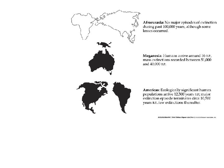Africa is an exception, where the extinction of mammalian megafauna did not follow the same pattern. This may have been because the mammals of Africa evolved “with man”, and were not exposed as naïve prey to sophisticated Pleistocene hunters.