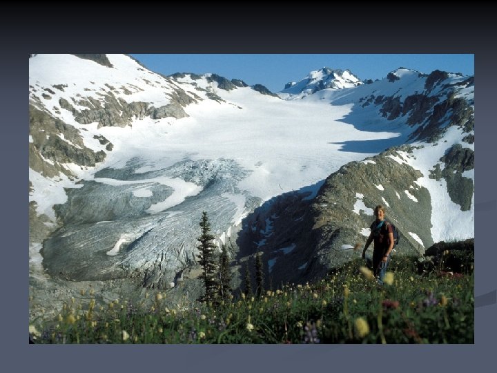 Practical matters: glaciers in the hydrological system n n Glacier-fed rivers provide much of the water supply in some parts of the world. Run-off characteristics (daily and seasonal) differ from other types of stream flow. Run-off locally used for hydroelectric power generation. Flood hazards in alpine areas from morainedammed and ice-dammed lakes.