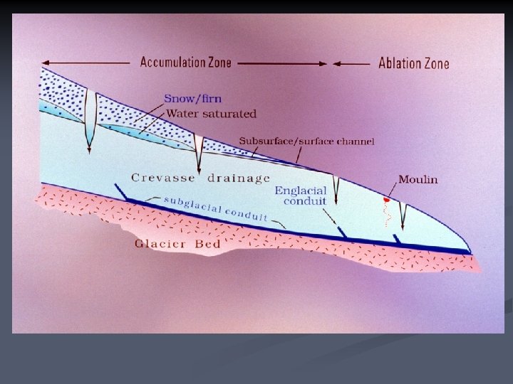Englacial Drainage Positive feedbacks enlarge seeps to streams n Negative feedbacks close them n • See also http: //www. glaciers-online. net/morteratsch/ice_cave_2009/index-en. html