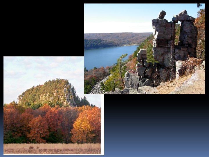 Continental landscape features All the sediment that a glacier picks up is deposited as unsorted and unlayered rock debris called “till” Most features are created during glacial retreat