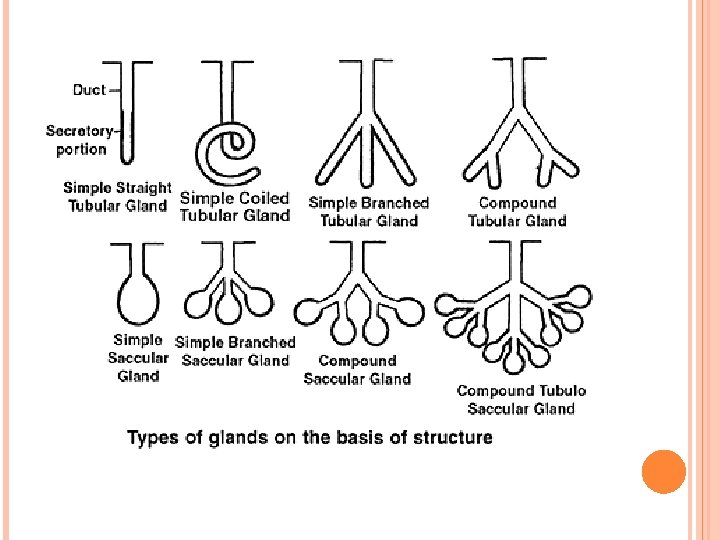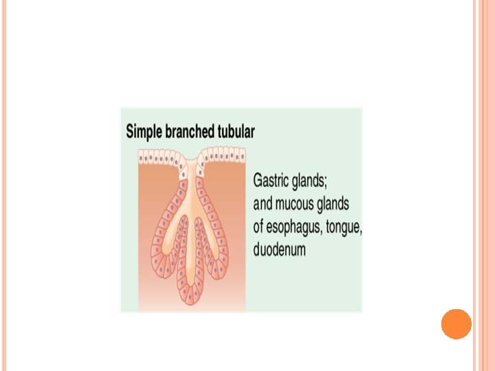 Tubular – ü straight (glands of large gut) ü coiled (sweat gland) ü branched (mucous secreting glands of pylorus)