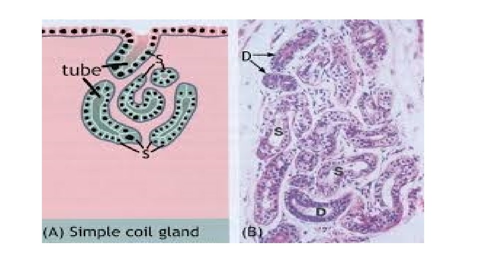 Branching of the duct: A-Simple glands possess one unbranched duct e. g. intestinal, gastric glands. B-Compound glands have branched duct system • e. g. salivary