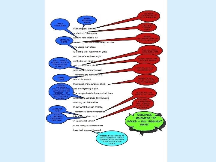 Lines 110 • • • 2 x metaphors 1 x onomatopoeia 2 x word choice 1 x alliteration Think about tense Lines 11 -19 • 1 x alliteration • 2 x metaphors • 3 x word choice Lines 20 -23 * 1 x alliteration * 1 x word choice * Think location