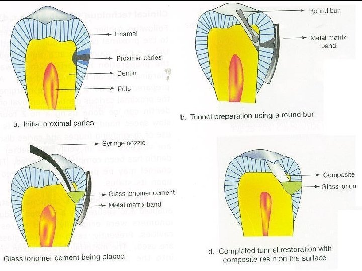 TUNNEL RESTORATION First discribed in 1963 Conservative alternative cavity preparation in primary molars. Indication Small proximal caries with out involvement of marginal ridges