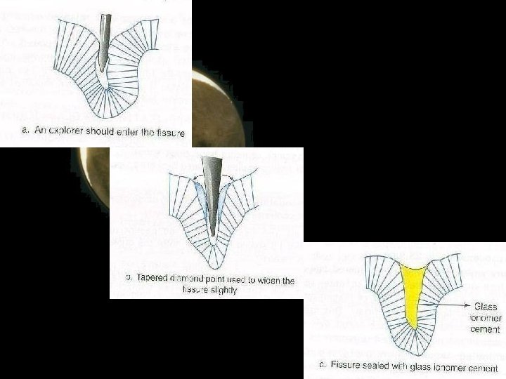 Pit and Fissure Sealants Cements were found to be unsuitable for use as sealnts if the fissures were less than 100µm wide. The material is mixed to a more fluid consistency to allow flow into the depths of the pits & fissure of the posterior teeth.