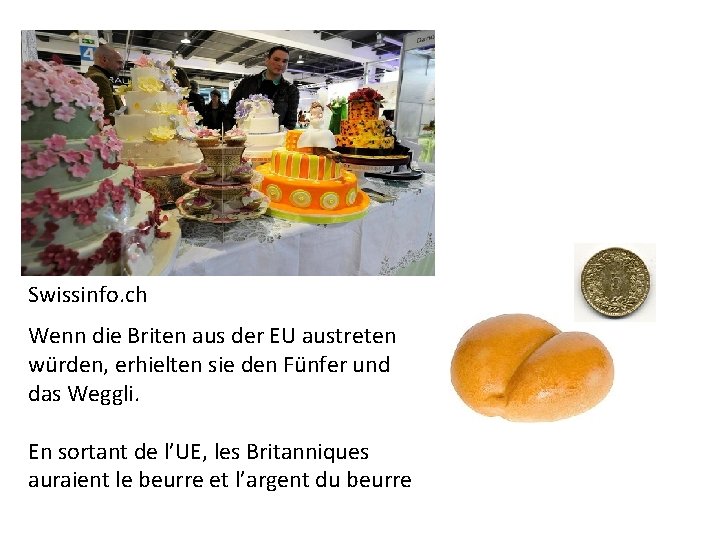 Swissinfo. ch Wenn die Briten aus der EU austreten würden, erhielten sie den Fünfer und das Weggli. En sortant de l’UE, les Britanniques auraient le beurre et l’argent du beurre
