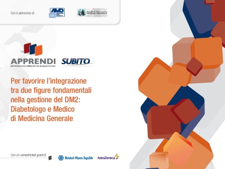 Diabete e rischio cardiovasclare Studio CODE-2 “Costs of Diabetes type 2, in Europe -” • 72% dei diabetici ha almeno una complicanza vascolare • 24% ha sia complicanze micro- che macro-vascolari • Nell’arco di 6 mesi il 13% dei diabetici viene ricoverato (23 gg. di ricovero in media) • 2. 834, 55 Euro il costo medio per paziente • Solo il 7% dei costi è legato alla terapia Koopman Schap M et al. , Diabetologia 2003; 45: 302 -303 Jonsson B et al. , Diabetologia 2002; 45: S 5 -12