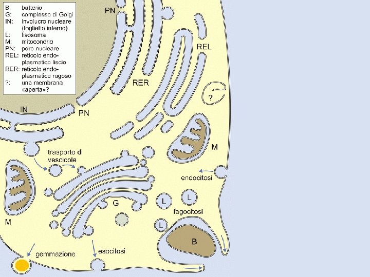quindi: all’interno della cellula si osservano membrane che delimitano precisi compartimenti • tali compartimenti intracellulari costituiscono i cosiddetti organelli membranosi • la suddivisione della cellula in tali compartimenti è di estrema importanza biologica…