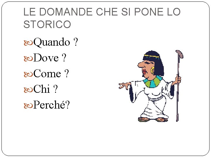 LE DOMANDE CHE SI PONE LO STORICO Quando ? Dove ? Come ? Chi ? Perché?