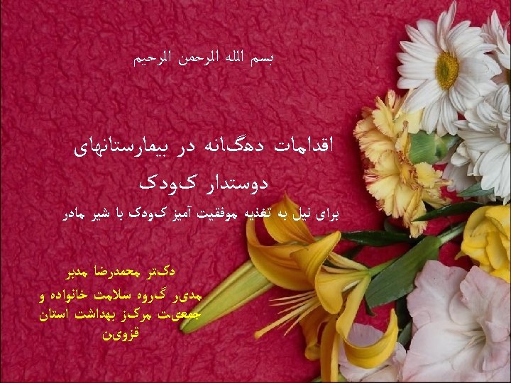 ﺍﺯ ﺗﻮﺟﻪ ﺷﻤﺎ ﻣﺘﺸکﺮﻡ UNICEF/WHO Breastfeeding Promotion and Support in a Baby-Friendly Hospital – 20 hour Course 2006