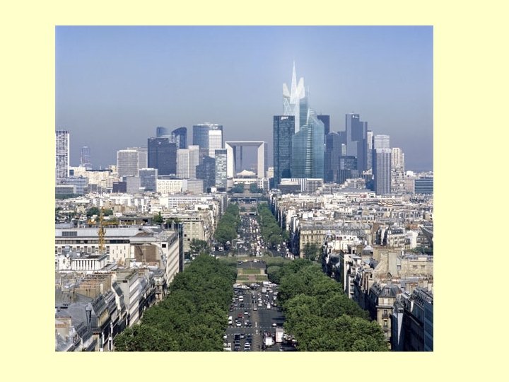European Cities: result of very long histories 3 Complex street patterns - prior to automobile, weird angles 3 Plazas and Squares - from Greek, Roman, Medieval 3 High density and compact form - wall around city or low-growth zoning 3 Low skylines - many built before elevators, others required cathedral or monument to be highest structure 3 Lively downtowns - center of social life, not just office work 3 Neighborhood stability - Europeans moved less frequently than we do. 3 Scars of War - many wars , many cities originally defensive 3 Symbolism - gothic cathedrals, palaces, and castles 3 Municipal Socialism - many residents live in buildings that are owned by city gov’t. Some of these are massive housing projects, others small scale apartment buildings.
