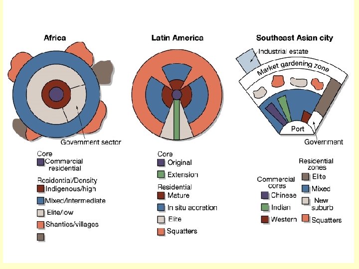 Modeling the Cities of the Global Periphery and Semiperiphery • Latin American City (Griffin-Ford model) • African City (de Blij model) • Southeast Asian City (Mc. Gee model)